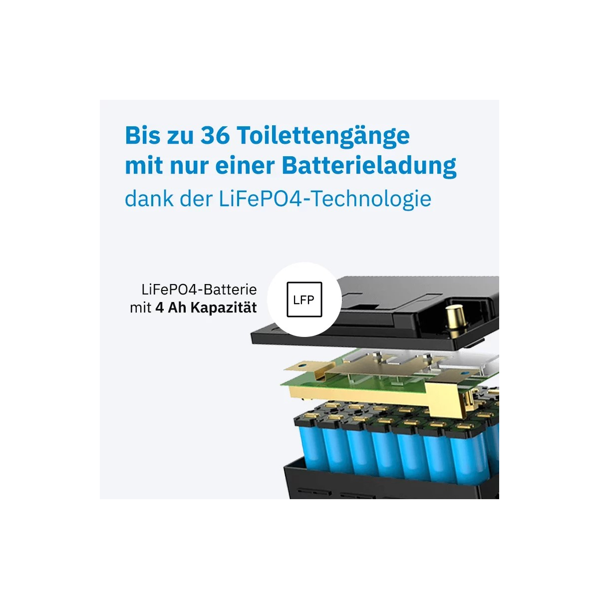 LC 4CS è la batteria di alimentazione con licenza ufficiale per Clesana C1 e, grazie all'affidabile tecnologia LiFePO4, garantisce un'alimentazione semplice e sicura. Con 51,2 Wh, fornisce energia sufficiente per un massimo di 50 utilizzi in bagno: compatto, robusto e pronto all'uso immediato.